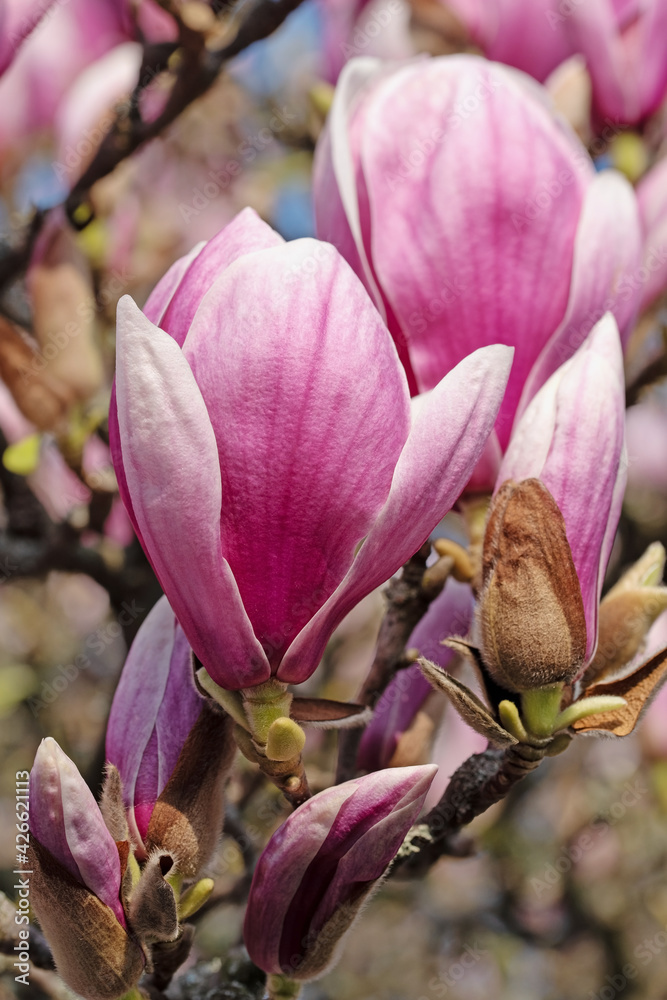 Blühende Magnolien, Magnolia, in einer Nahaufnahme