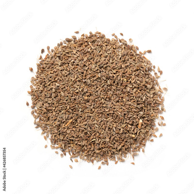 Aniseed – Heap of Anise Seeds, Pile of Aromatic Condiment, Spice Ingredient – Top View, Close-Up Macro, from Above – Isolated on White Background