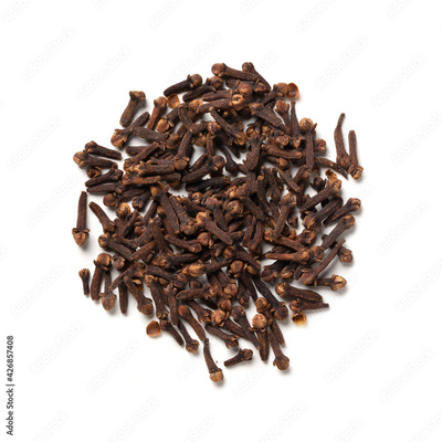 Cloves – Pile of Dried Clove Spice, Heap of Aromatic Condiment – Top View, Close-Up Macro, from Above – Isolated on White Background