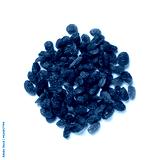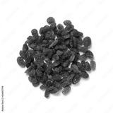 Raisins – Dark Sultana Dried Grapes, Sweet, Sugary Heap of Superfood Snack – Top View, Close-Up Macro, from Above – Isolated on White Background