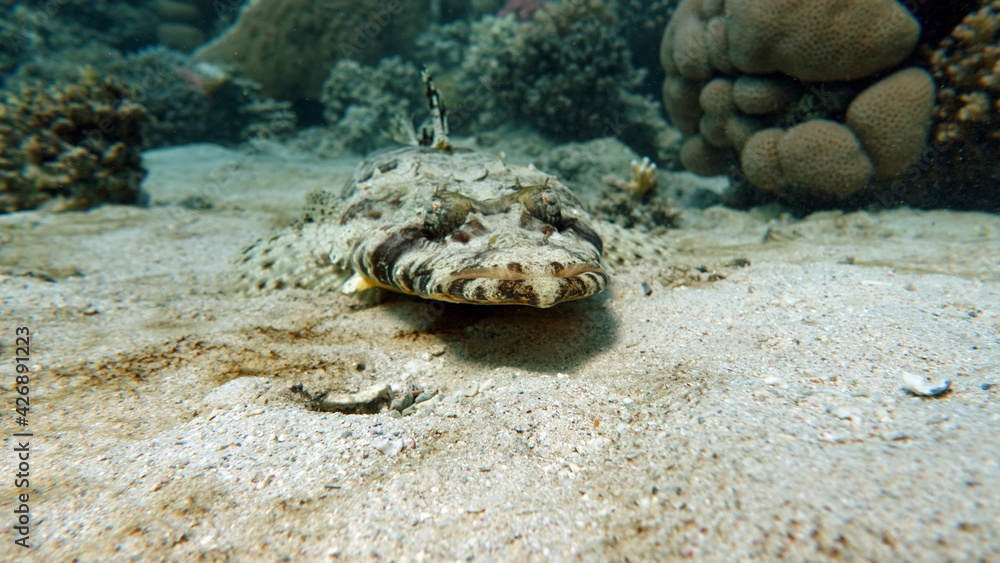 Crocodile fish, fish bone type fish Osteichthyes Flathead (Platycephalidae). Crocodile fish, tentacle flatheads.