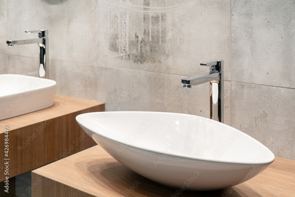 Water tap and sink in the bathroom. The interior of the living quarters.