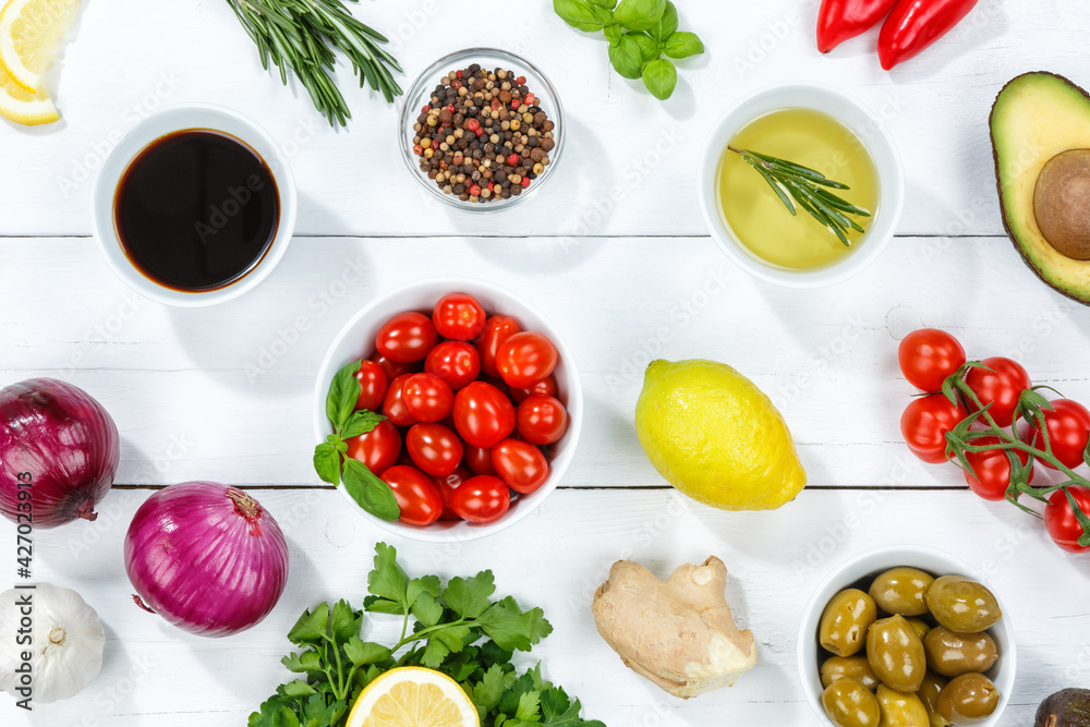 Healthy vegan food background clean eating vegetarian organic wooden board