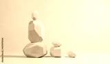 Composition of geometric balancing wooden stones. Concept of balance. Pastel background with copy space.