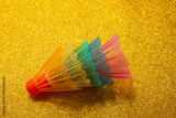 Rainbow colored badminton birdies. Outdoors sports game, family leisure