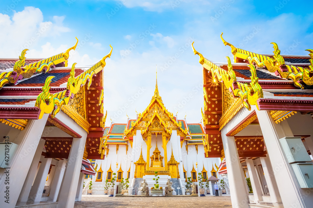 The Grand Palace of Thailand in bangkok, built in 1782, made up of numerous buildings, halls, pavilions set around open lawns, gardens and courtyards