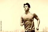 young asian man running outdoors