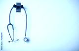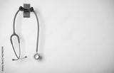 stethoscope equipment of doctor with is hanging on the white wall background