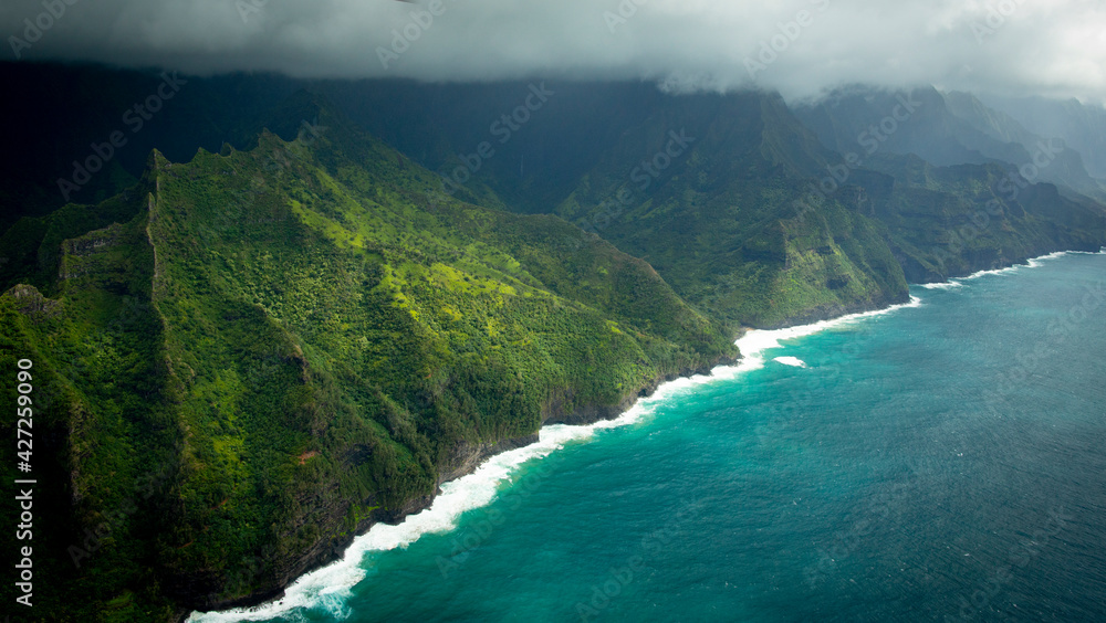 Aerial view of Na Pali Coast in Kauai, Hawaii