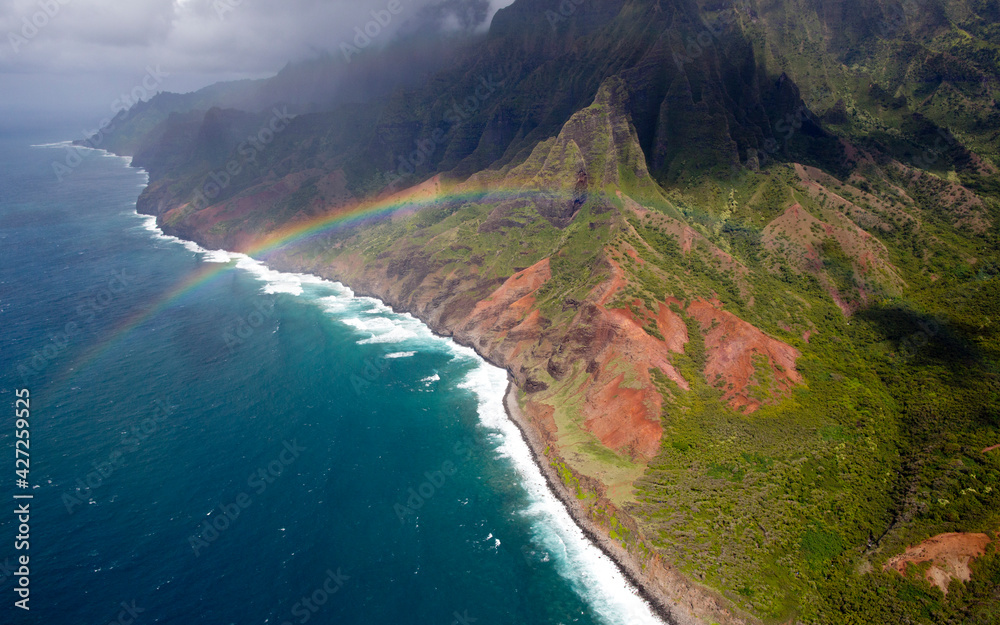 Aerial view of Na Pali Coast in Kauai, Hawaii