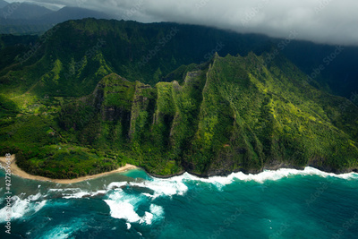 Aerial view of Na Pali Coast in Kauai, Hawaii