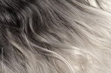 close up of single piece clip in wavy black to bleached blonde ombre style synthetic hair extensions