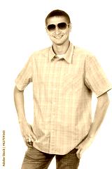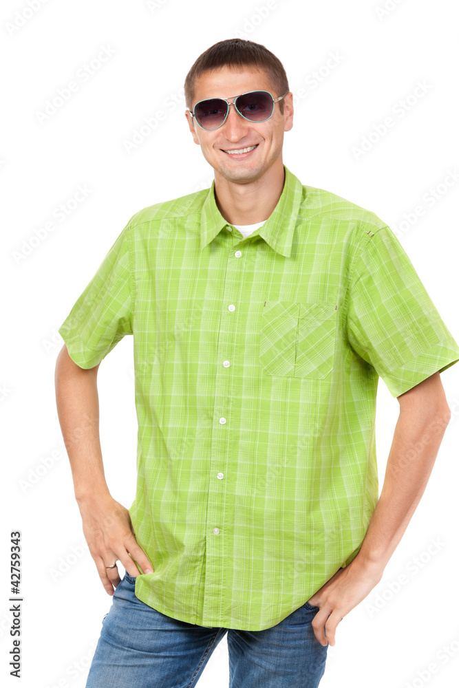 Portrait of a handsome fashion man in sunglasses in casual cloth