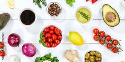 Healthy vegan food background clean eating vegetarian organic wooden board banner