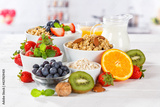 Healthy breakfast strawberry yogurt fruit bowl pot eating yoghurt food