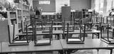 zamknięte szkoły z powodu pandemii covid-19, koronawirus w szkole, nauczanie zdalne, puste szkoły podczas pandemii, sala lekcyjna bez uczniów