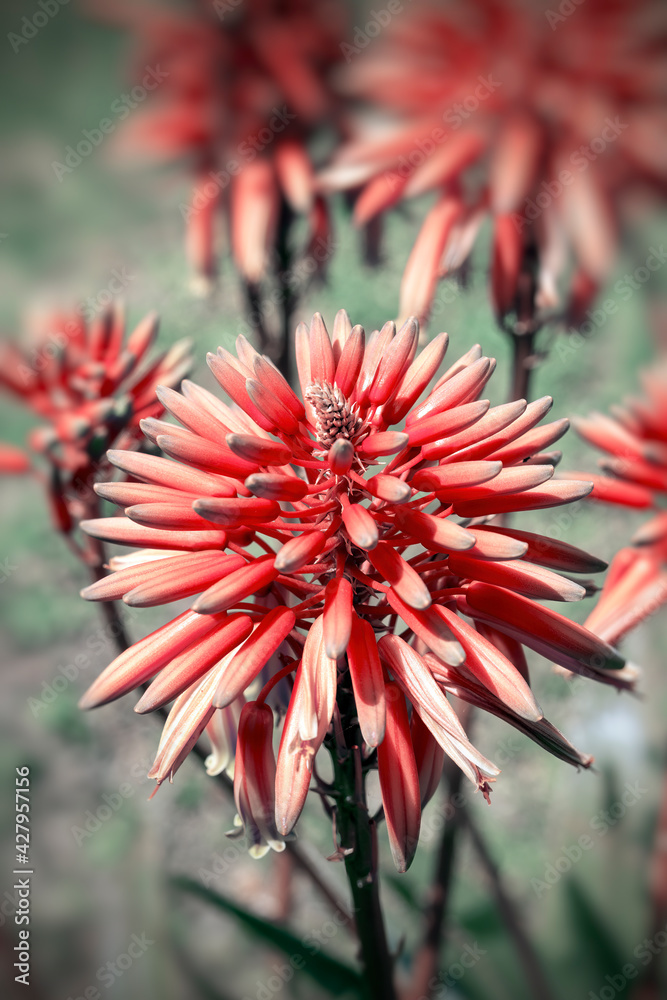 Red flowers close up. Nature background
