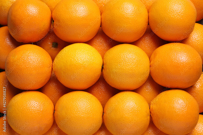 Oranges in Rows, Arranged – Background or Pattern of Oranges Ordered in Line – Top View, Close-Up Macro, from Above