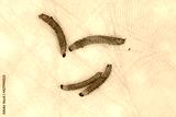 Larvae of fly from the family Bibionidae called March flies and lovebugs on soil. This insects live in soil and damaged plant roots.