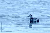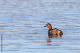cute small water bird Little Grebe, Tachybaptus ruficollis, swimming on a river hunting for food.