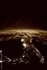 Beautiful blue planet earth with night city lights. Central Europe and Italy at night view from space. Modern cities and electricity