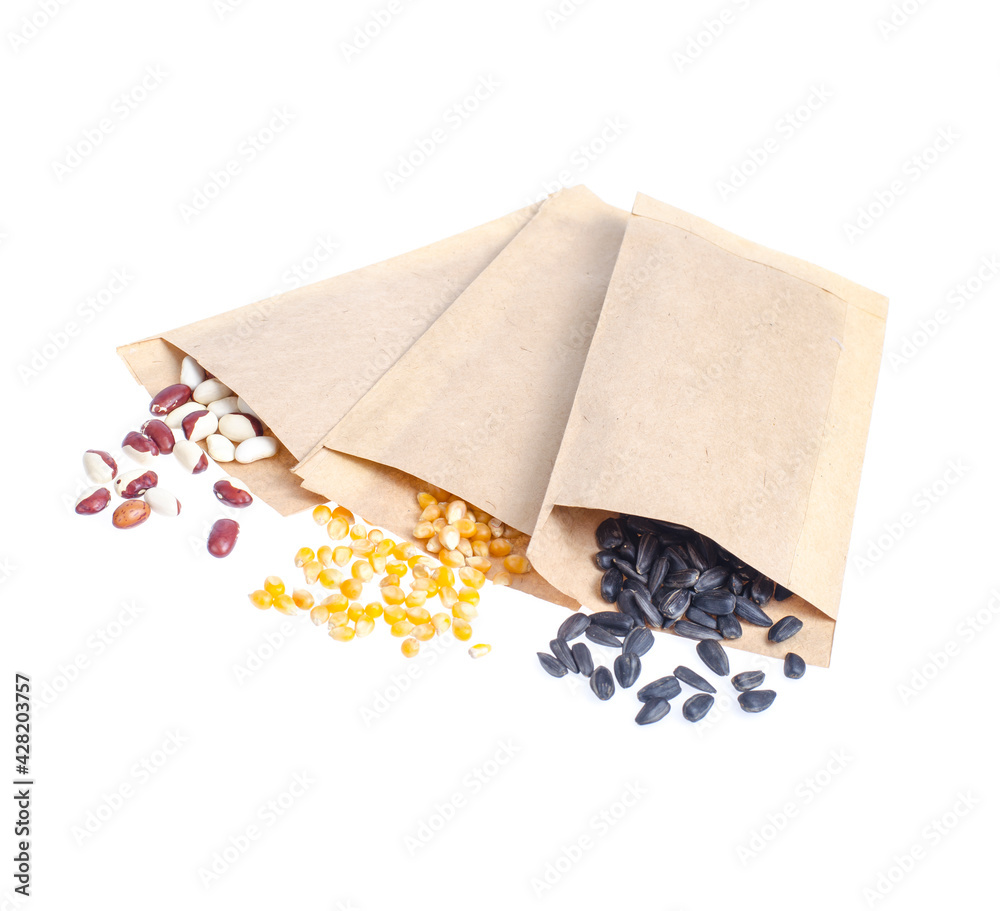 Spring preparation and planning for sowing vegetable. Veggie seeds in craft paper envelopes. Seasonal garden work