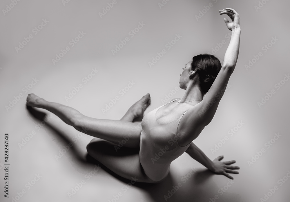 Beautiful dancer posing in studio. Woman dance contemporary. Black and white photography