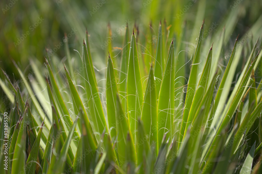Agave filifera aka thread agave attractive leaves natural macro floral background