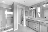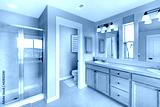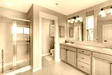 Beautiful classic bathroom with double sink and shower.