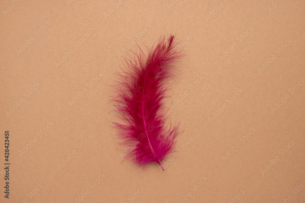 Beautiful abstract pink feather on pastel beige background colorful background, colorful feather