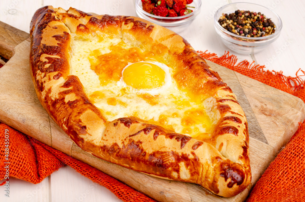 Homemade cakes, khachapuri with cheese and egg