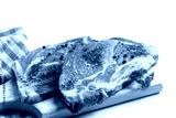 Raw pork meat slice on white background