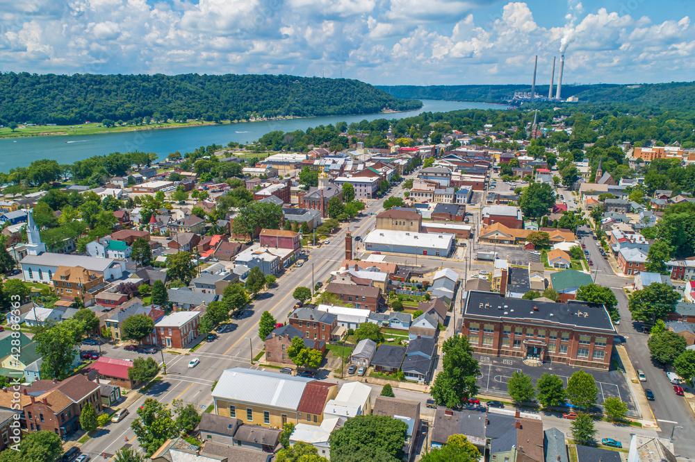 Aerial View of Historic Madison Indiana on the Ohio River