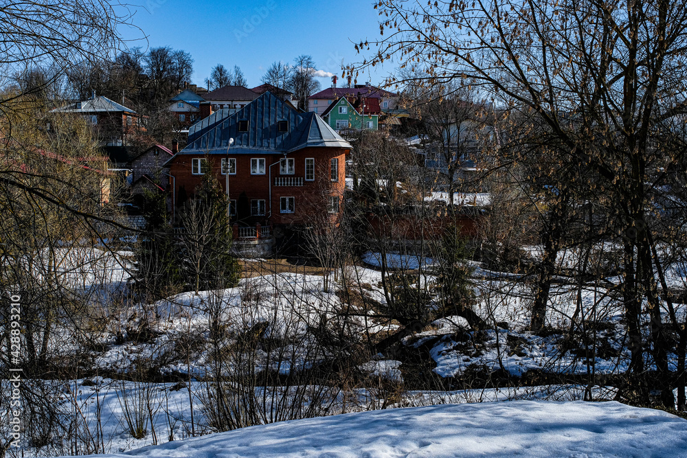 Country winter landscape with the image of village