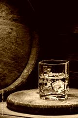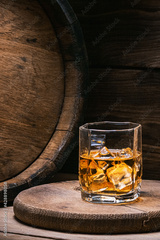 Whiskey in glass with ice is a strong alcoholic drink from an oak barrel. You need to drink whiskey with ice then the whiskey tastes better of an oak barrel.