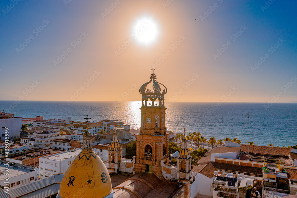 Puerto Vallarta sunset with the church as the symbol Icon of downtown