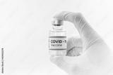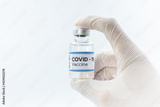 Vaccine concept in the hand of doctor white vaccine jar with copy space. Vaccine Concept of the fight against coronavirus, immunization, and treatment, medical concept, isolated on blue background.