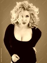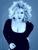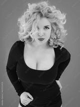 young beautiful blonde curly haired woman plus size body positive with big breasts