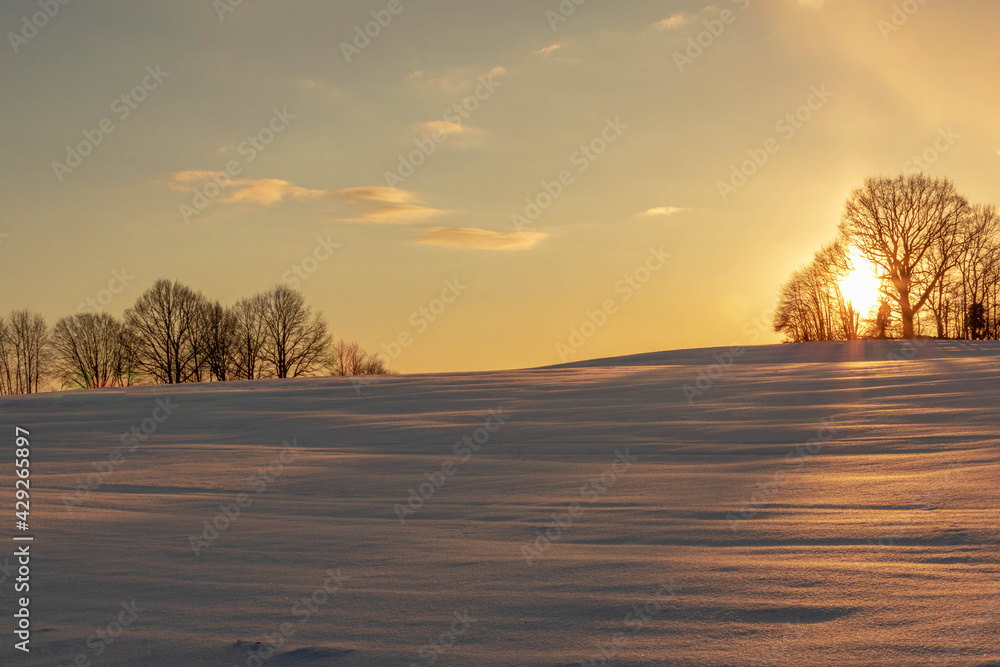 sunset in the snow