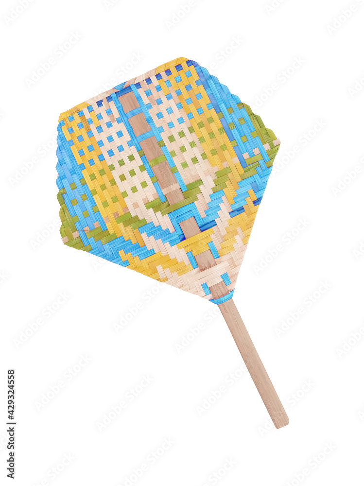 Thai native colorful fan made from bamboo weave isolated on white background with clipping path