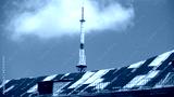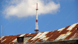 Dachy Lwowa na tle nieba latem, Ukraina