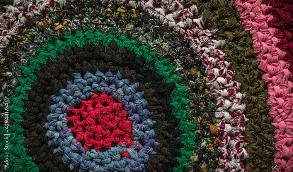 An old round rug made from pieces of different fabrics. A traditional item from the Soviet Union