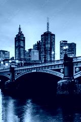 Princes Bridge and city buildings on the Yarra River in Melbourne, Australia in the evening - 2021