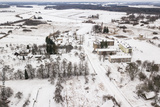 Aerial view of Kikuri village in winter, Latvia.