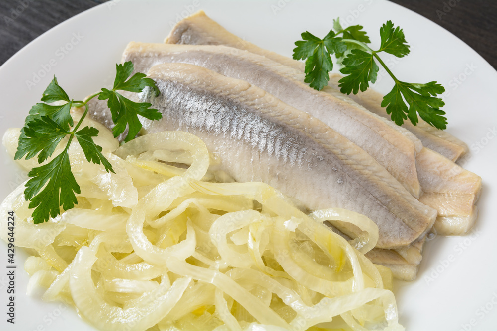 śledzie marynowane w oleju z cebulą