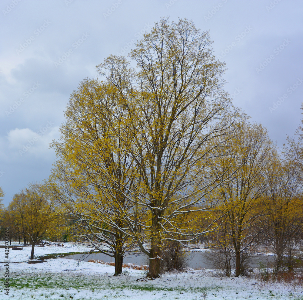 Late winter, early spring landscape in Bromont, Eastern township Quebec, Canada
