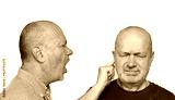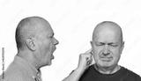 a man screaming in the ear. Concept of his ego screaming inside themselves