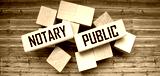 the word Notary Public written on wooden blocks and wooden background. Can be used for business, marketing, financial concepts.