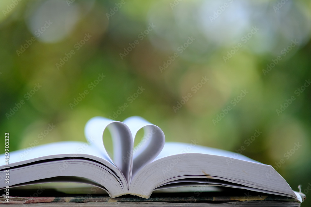 book on wood table and education learning in library, stack piles of book on table and idea concept