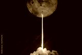Rocket with blast and smoke takes off to the red planet mars mars, concept. Spacecraft lift off to explore other planets. Rocket launch